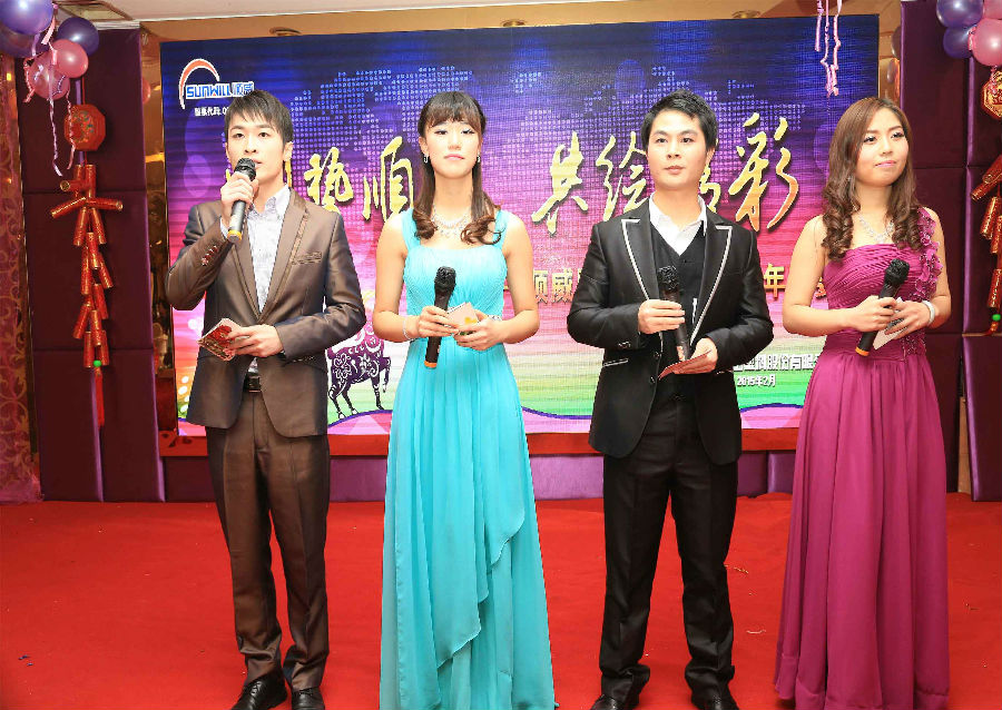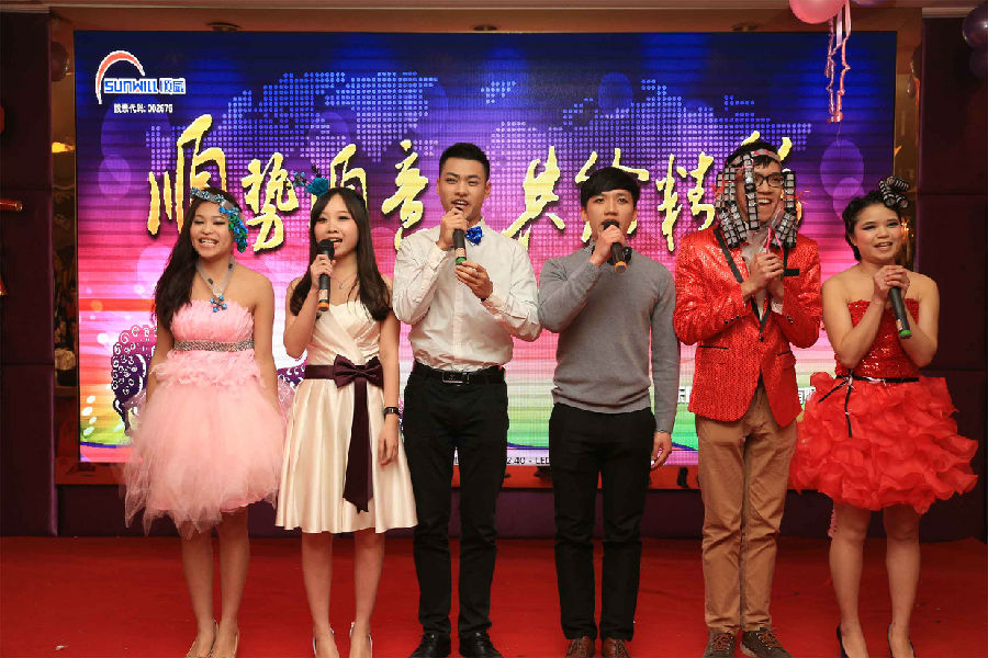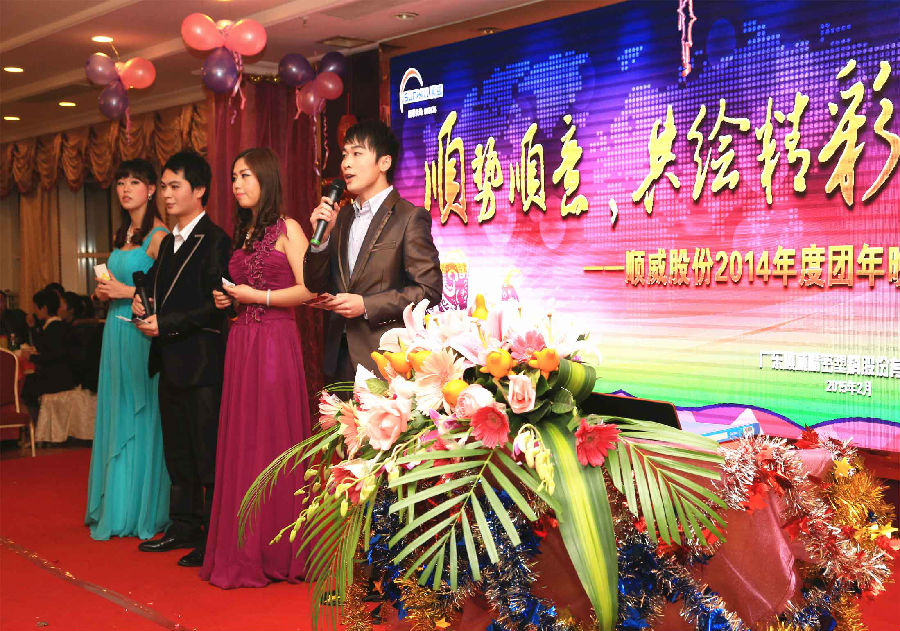 順勢(shì)順威,共繪精彩。作為公司年底的重大文化盛事,順威股份廣東區(qū)域2014年團(tuán)年晚宴于2015年2月8日晚在容桂源興酒家圓滿落下帷幕。精心的晚會(huì)流程安排、演員們用心的表演、主持人默契的配合、節(jié)目的創(chuàng)新突破,使得整場(chǎng)晚會(huì)亮點(diǎn)紛呈,掀起了一輪又一輪的高潮。而順威股份董事長(zhǎng)麥仁釗先生,順威股份董事、總裁王世孝先生等公司高層領(lǐng)導(dǎo)振奮人心的講話,更是描繪出順威股份2015年度工作的美好藍(lán)圖,明確了公司發(fā)展的方向,極大地鼓舞了公司員工斗志,給人以無(wú)窮的信心和希望。