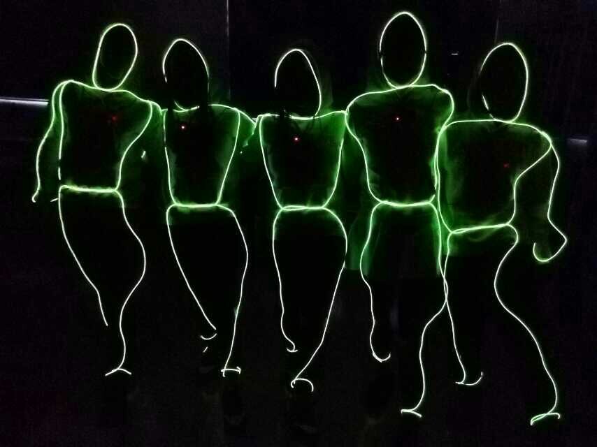 閃光燈下的激光舞,原來(lái)是5名靚女在“故弄玄虛”