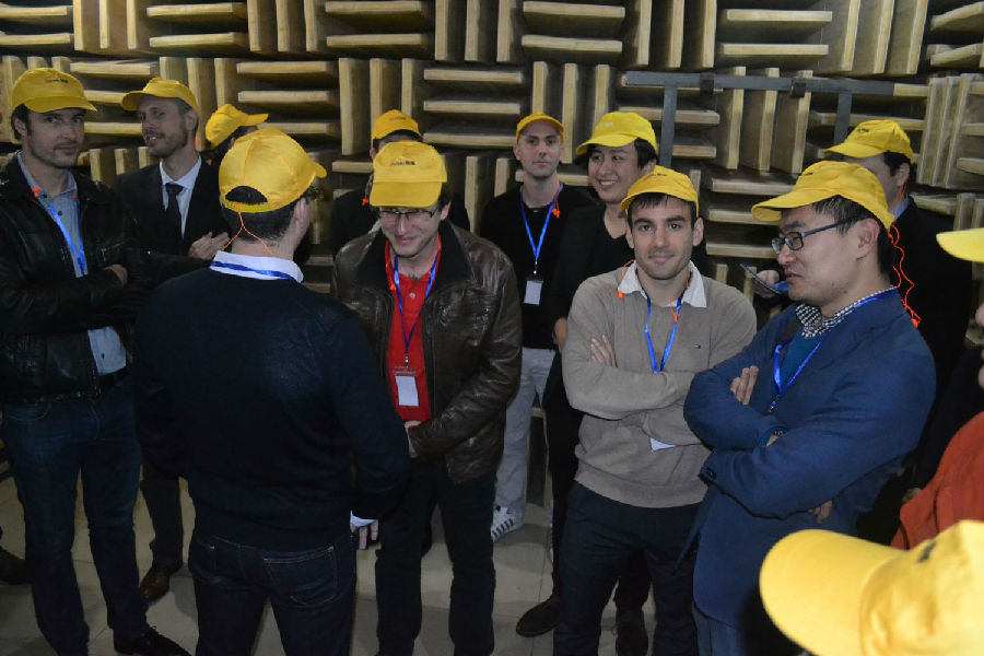 會(huì)議結(jié)束后,客商一行到公司展廳參觀。玲瑯滿目的產(chǎn)品讓客商們目不銜接,對(duì)于比較感興趣的產(chǎn)品,客商們向陪同人員現(xiàn)場(chǎng)咨詢其功能特點(diǎn)、制作工藝等情況,并拍照記錄。隨后,王總帶領(lǐng)客商一行來到模具分公司及塑料分公司生產(chǎn)車間參觀。期間,貴賓們對(duì)現(xiàn)場(chǎng)的先進(jìn)設(shè)備、產(chǎn)品工藝等很感興趣,紛紛駐足詳細(xì)觀察。同樣作為參觀團(tuán)指引翻譯官的海外市場(chǎng)部莫煥文、模具市場(chǎng)部于摯樸和王琛在參觀期間對(duì)法國(guó)貴賓提出的問題均做出詳細(xì)的解答。值得一提的是,客商們?cè)谕蹩偟膸ьI(lǐng)下一同走進(jìn)研發(fā)部消音室,親身體驗(yàn)靜音效果。體驗(yàn)過后,客商們對(duì)公司的消音設(shè)備點(diǎn)頭稱贊。