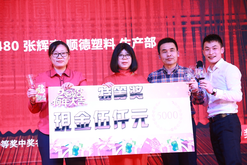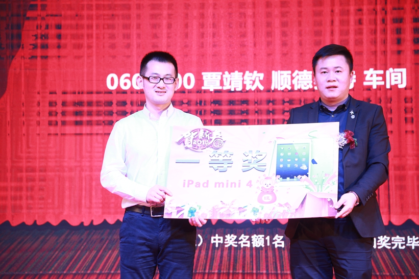 與此同時(shí),節(jié)目流程中穿插了員工最受關(guān)注的幸運(yùn)大抽獎(jiǎng)。本年度抽獎(jiǎng)獎(jiǎng)品非常豐富,包括5000元現(xiàn)金獎(jiǎng)、IPad mini 4、格力手機(jī)、華為手機(jī)、TCL智能除濕機(jī)、TCL電暖器、臺地扇、多用途電熱鍋以及商場購物劵等,共計(jì)1109份獎(jiǎng)品,中獎(jiǎng)率達(dá)60%。除此之外,集團(tuán)常務(wù)副總裁何偉先生、集團(tuán)組織及營運(yùn)副總裁成再育先生各贊助現(xiàn)金大獎(jiǎng)3000元,讓在場的同事們一次次沸騰起來。最后,總裁莫綺顏女士現(xiàn)場贊助了現(xiàn)金大獎(jiǎng)5000元,把晚會(huì)現(xiàn)場的氣氛推上了最高潮,引領(lǐng)順威人在華燈匯聚之下,歡聲不斷,激情吶喊。
