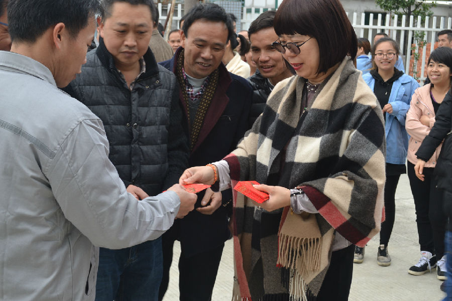 9點18分,是一個非常有意義的重要時刻,伴隨著總裁莫綺顏女士點燃鞭炮,開工儀式便拉開了序幕。鞭炮齊鳴兆祥瑞,開門利是博好彩!鞭響轟鳴,紅屑滿地,預示著順威股份在新的一年紅紅火火,大吉大利!同時,公司給現場每位員工派發開工利是,祝愿大家在新的一年里工作順利,幸福健康!